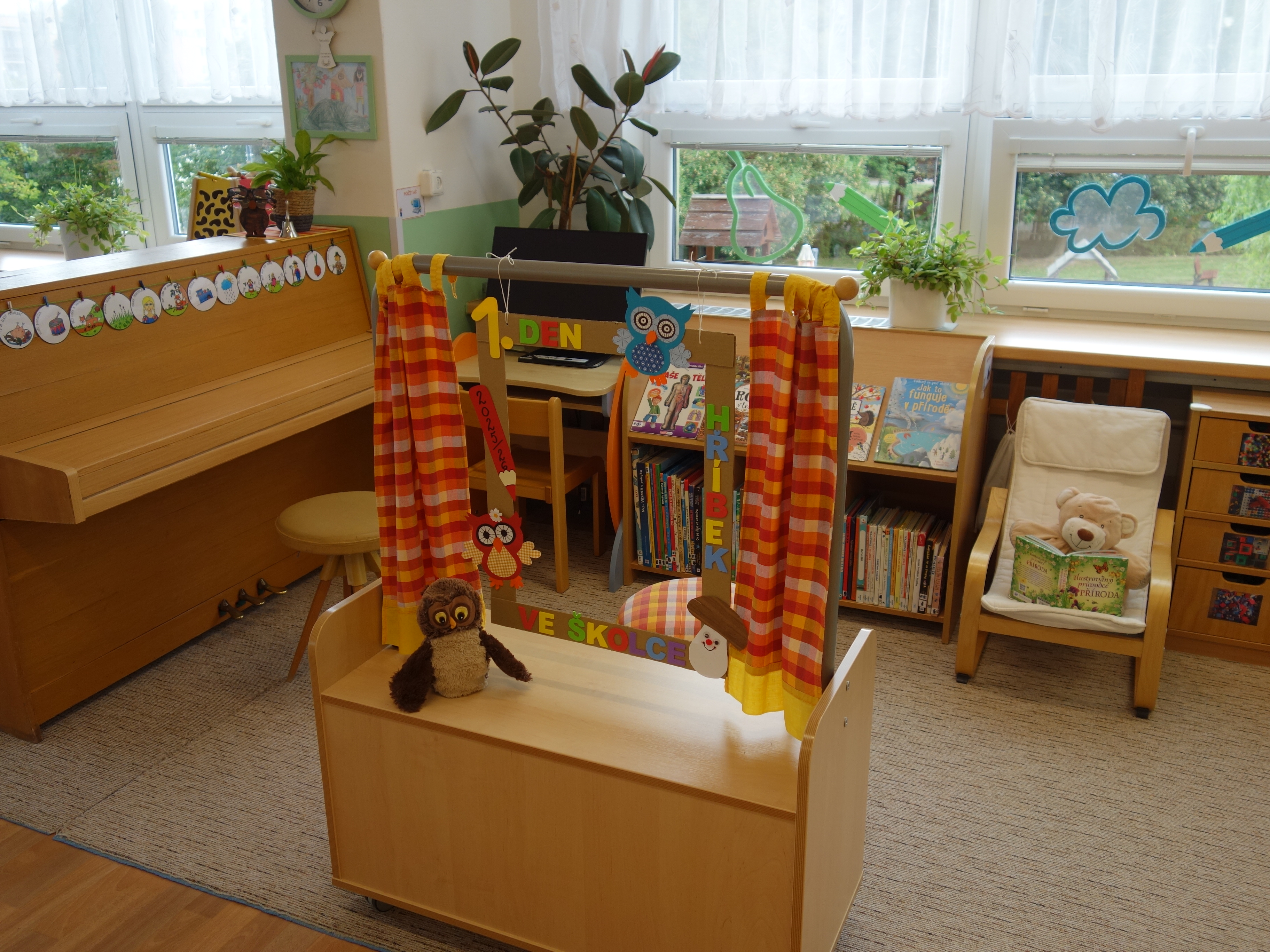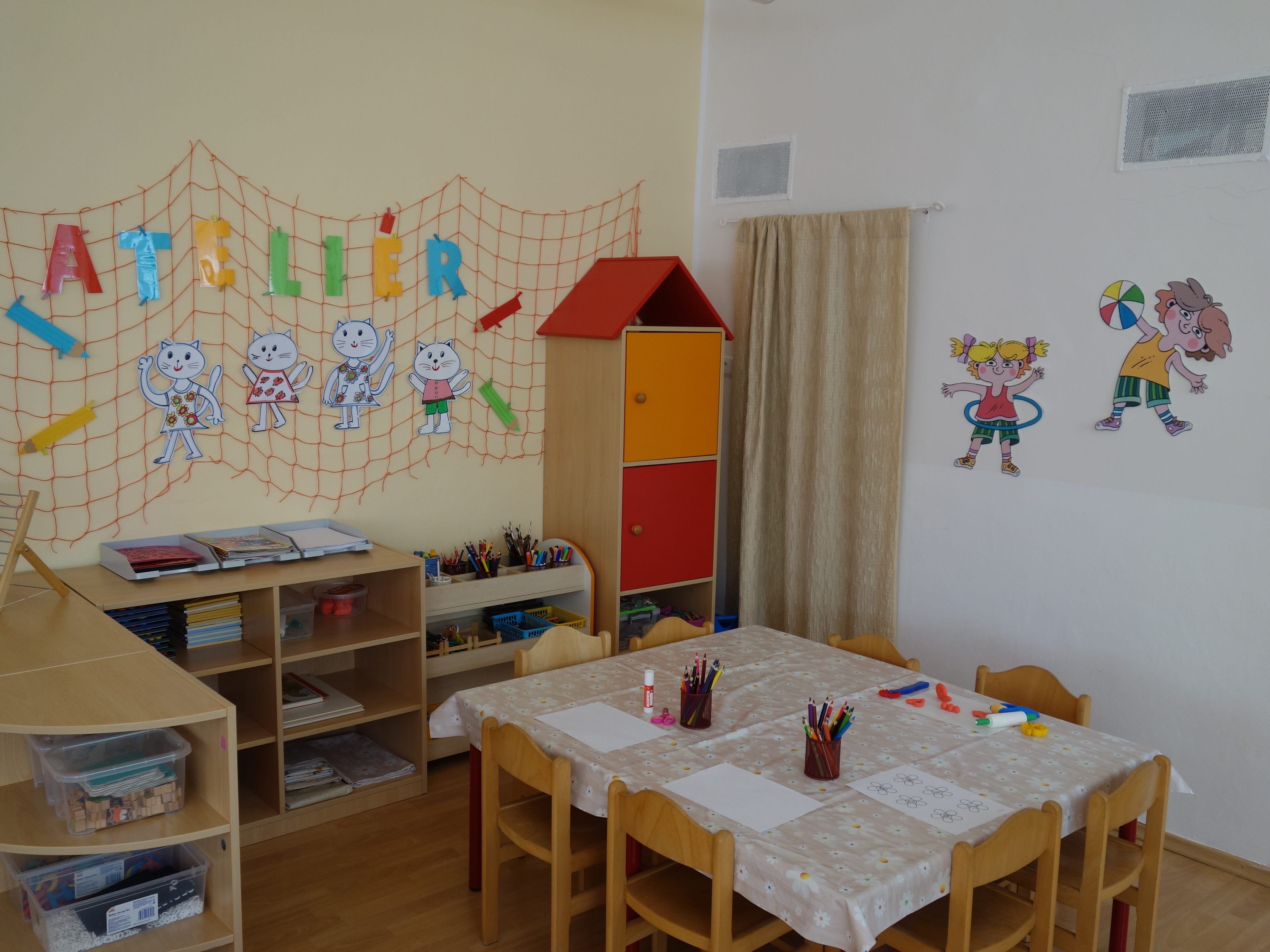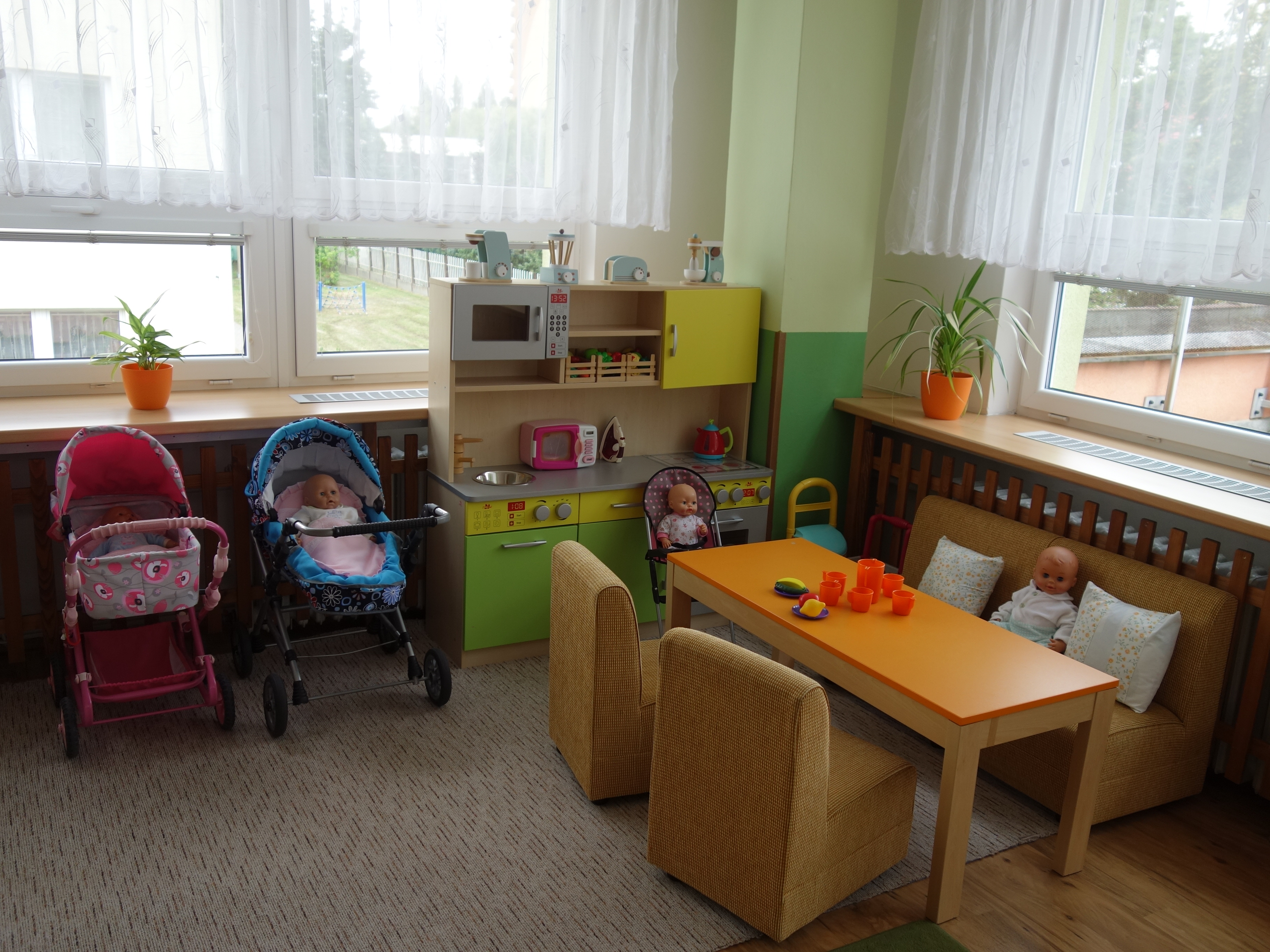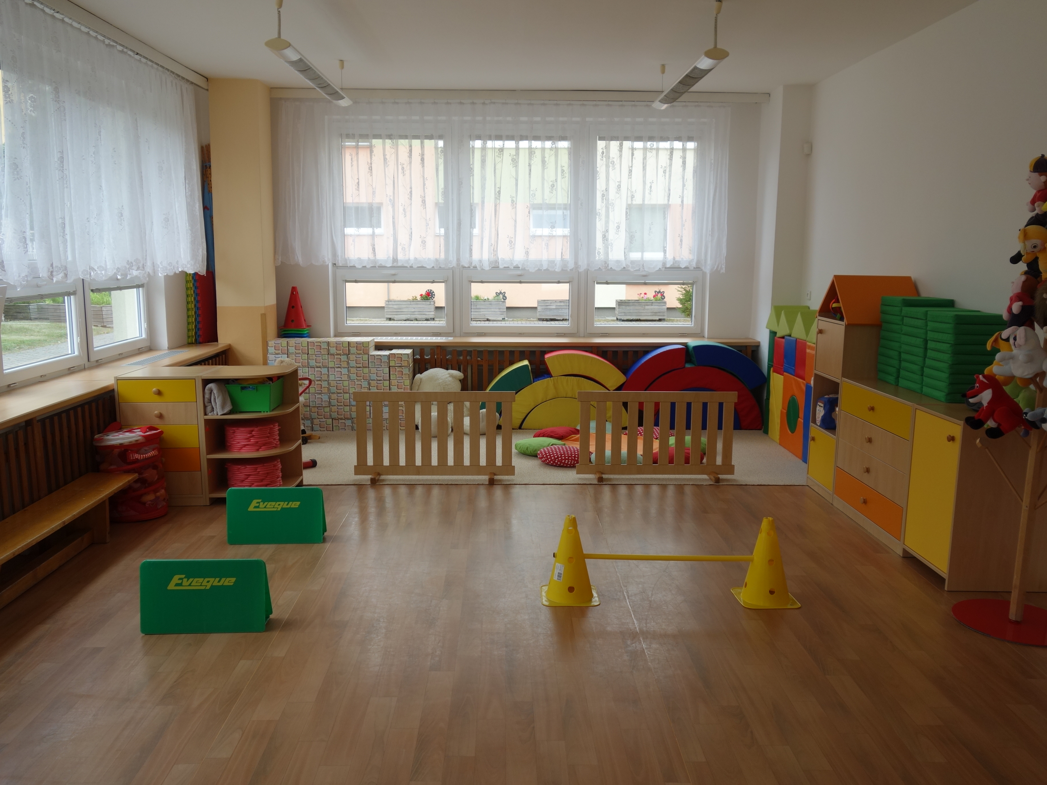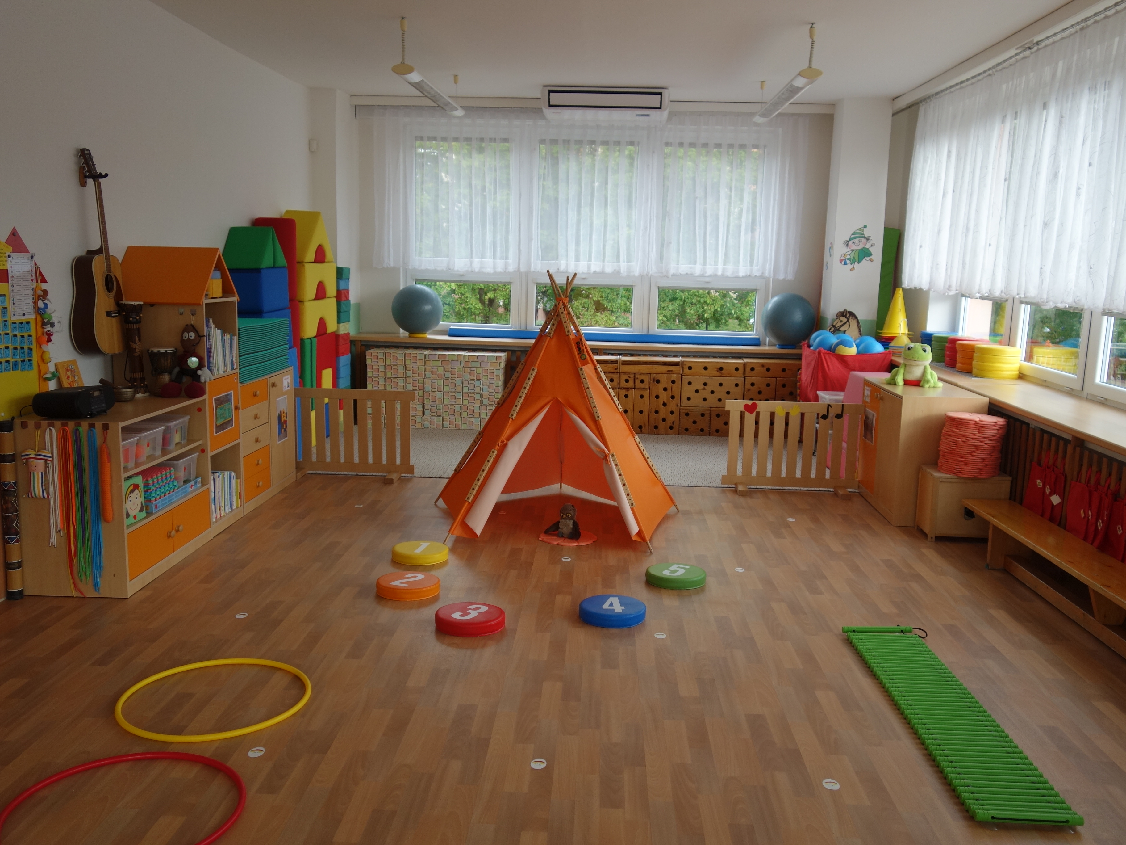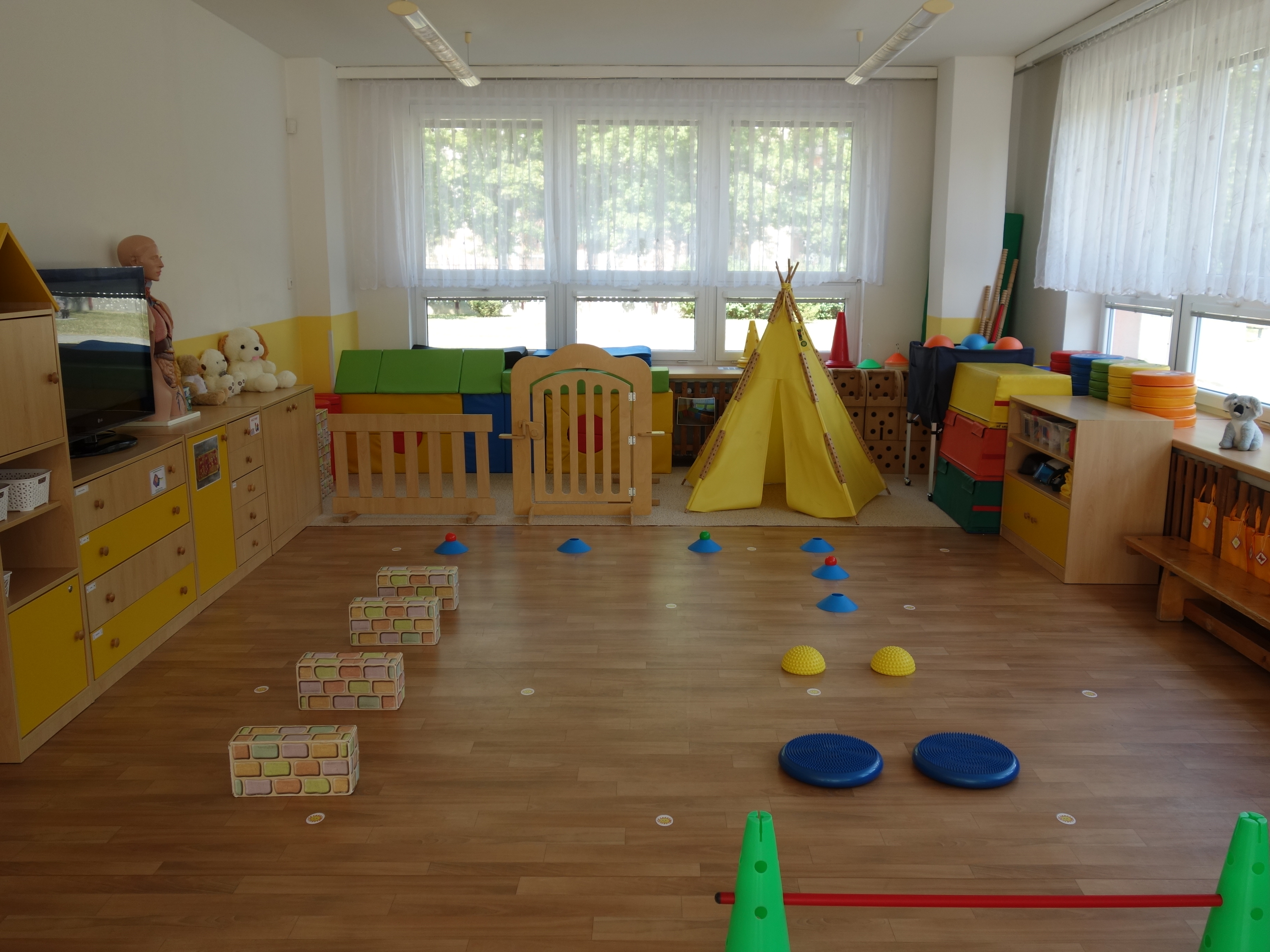 Děti se vzdělávají v pěti třídách – Hříbek, Kočička, Květinka, Motýlek a Sluníčko. Každá třída má svůj vlastní vchod do budovy, přípravnu jídla, sociální zařízení, šatnu pro děti i zaměstnance. Všechny třídy jsou vybaveny dřevěným nábytkem, který je rozdělen do několika hracích koutků, aby sloužily k celkovému rozvoji dětí. Hračky a didaktické pomůcky jsou umístěny tak, aby si je děti mohly samostatně brát a následně i ukládat. Ve třídě jsou k dispozici pomůcky pro pohybové, výtvarné, hudební a jiné činnosti. Dbáme na to, aby děti byly vedeny k rozvoji sebeobsluhy, současně klademe důraz na pitný režim a dostatek pohybu. Výzdoba tříd a šaten se pravidelně obměňuje, aby se v nich děti cítily dobře a chodily do mateřské školy rády.