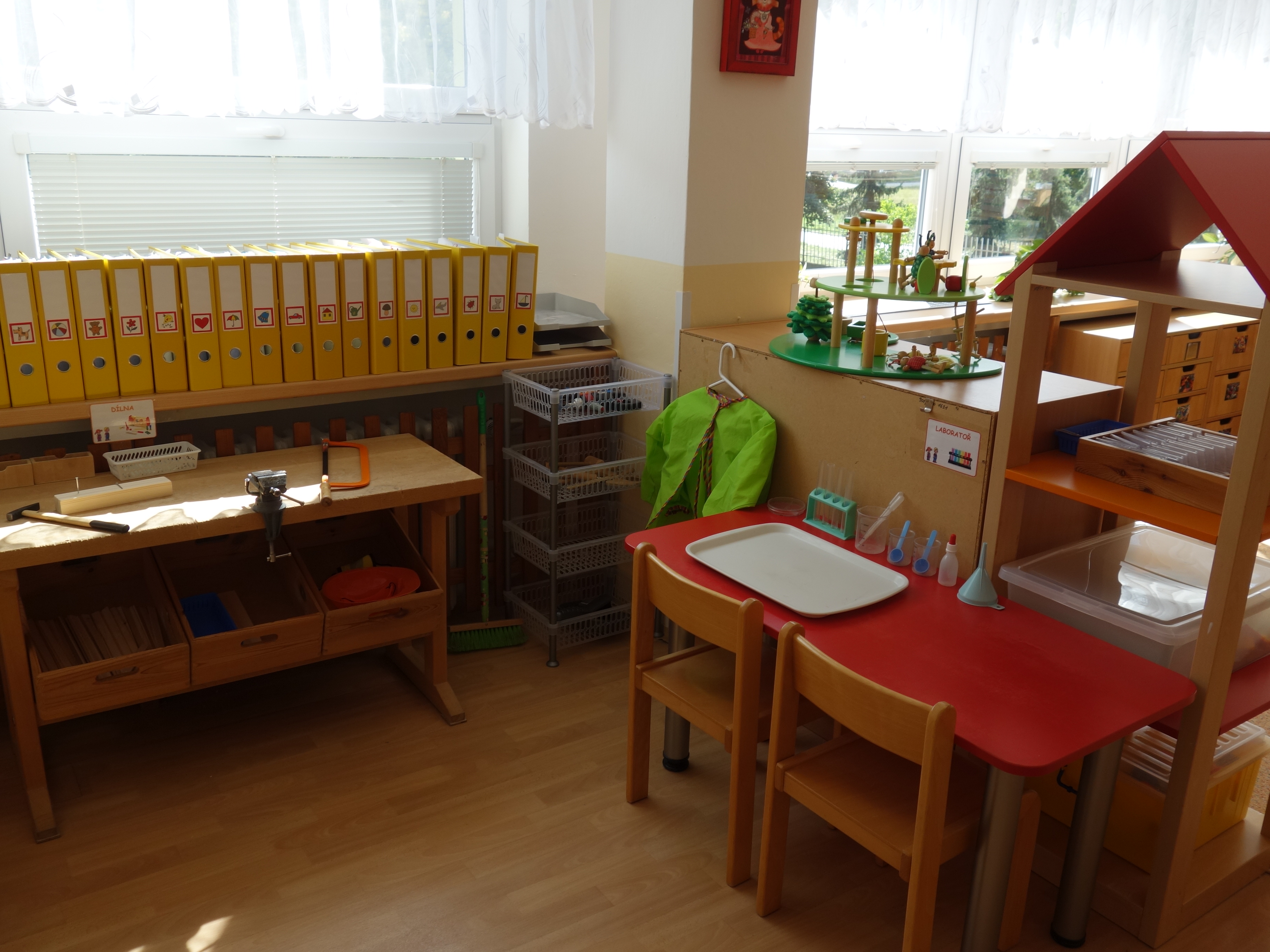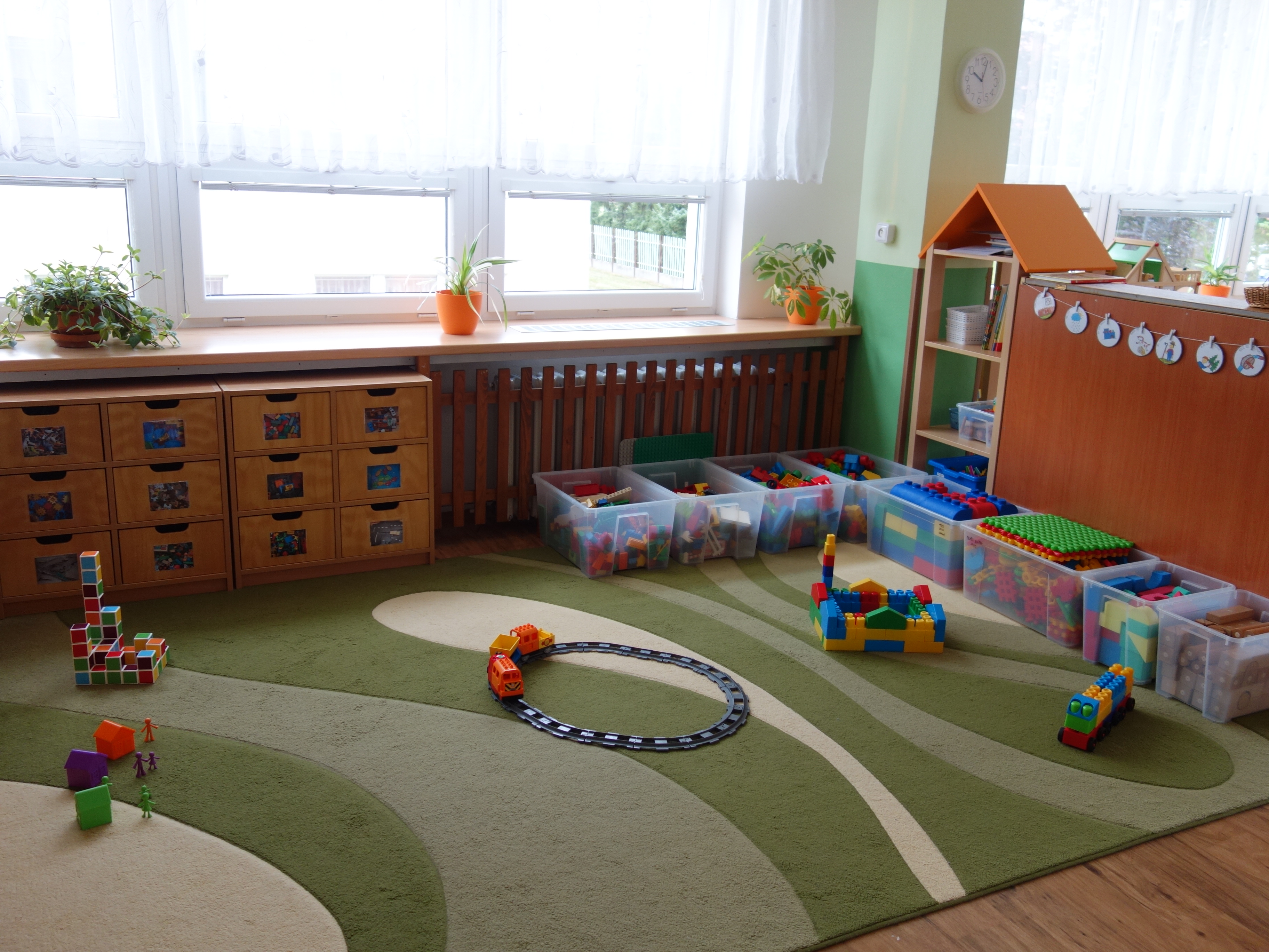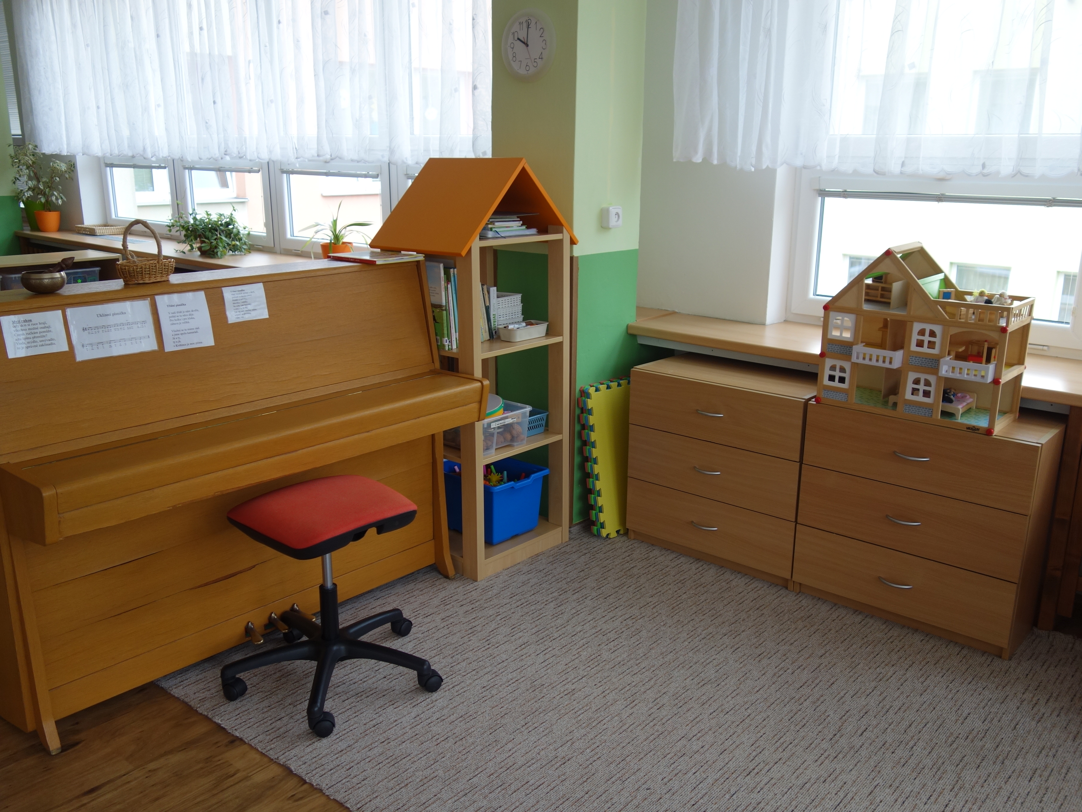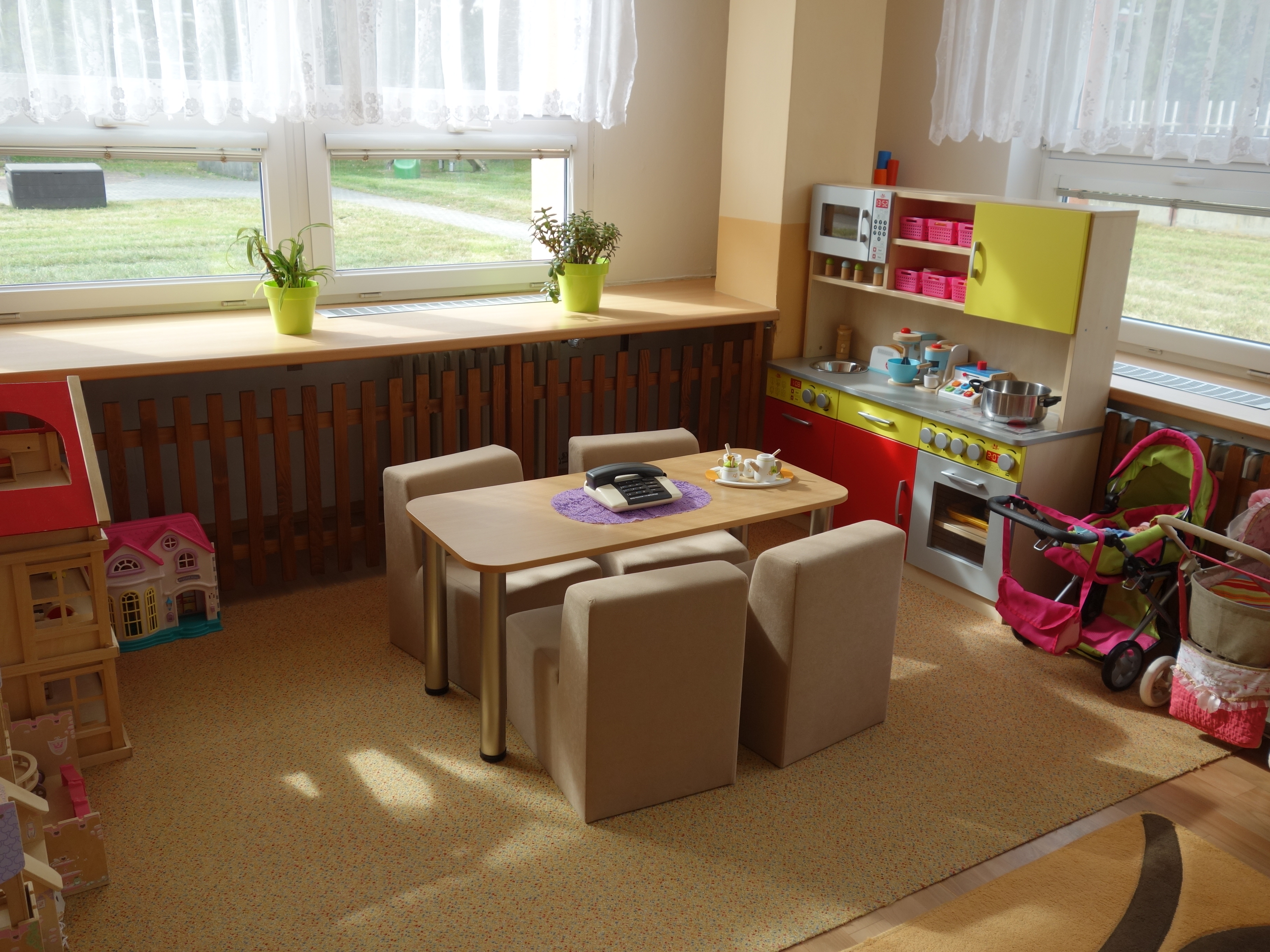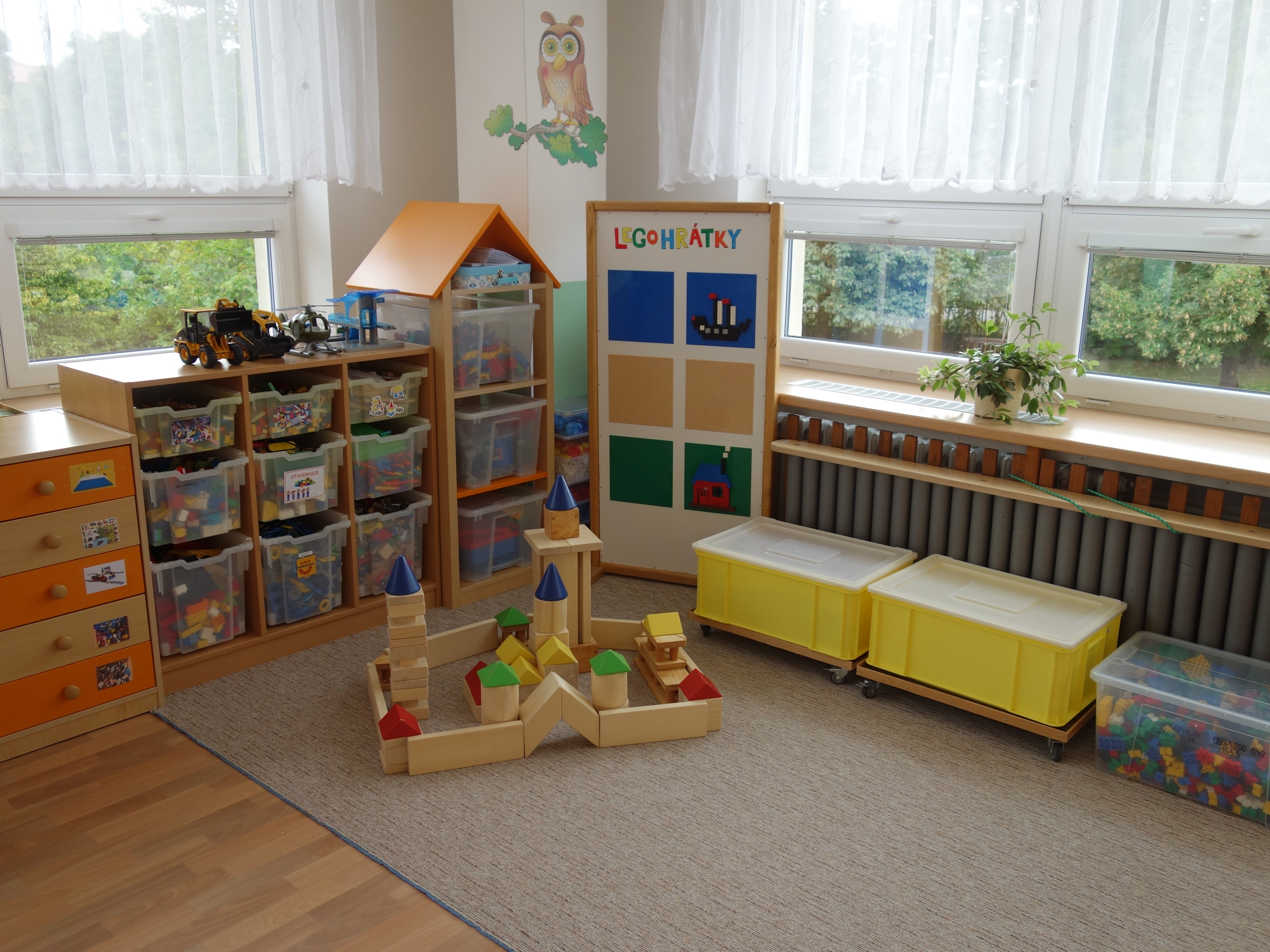 Děti se vzdělávají v pěti třídách – Hříbek, Kočička, Květinka, Motýlek a Sluníčko. Každá třída má svůj vlastní vchod do budovy, přípravnu jídla, sociální zařízení, šatnu pro děti i zaměstnance. Všechny třídy jsou vybaveny dřevěným nábytkem, který je rozdělen do několika hracích koutků, aby sloužily k celkovému rozvoji dětí. Hračky a didaktické pomůcky jsou umístěny tak, aby si je děti mohly samostatně brát a následně i ukládat. Ve třídě jsou k dispozici pomůcky pro pohybové, výtvarné, hudební a jiné činnosti. Dbáme na to, aby děti byly vedeny k rozvoji sebeobsluhy, současně klademe důraz na pitný režim a dostatek pohybu. Výzdoba tříd a šaten se pravidelně obměňuje, aby se v nich děti cítily dobře a chodily do mateřské školy rády.