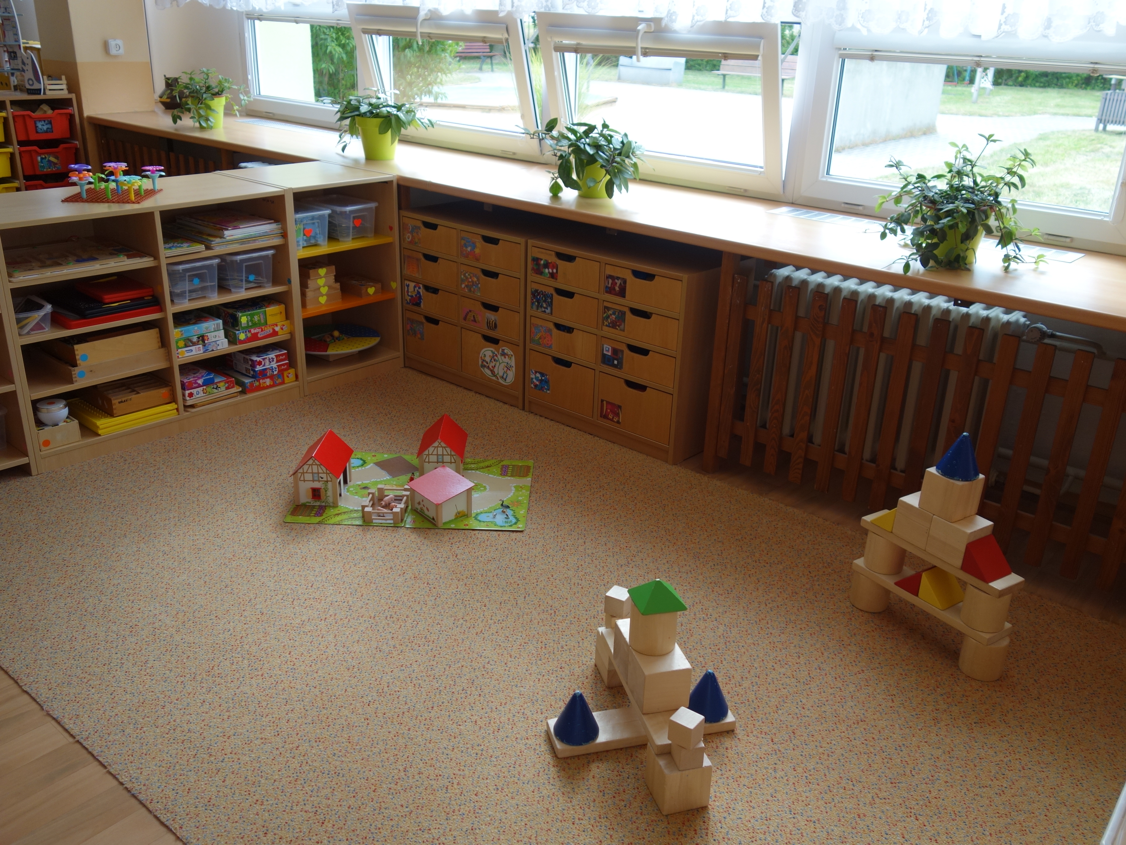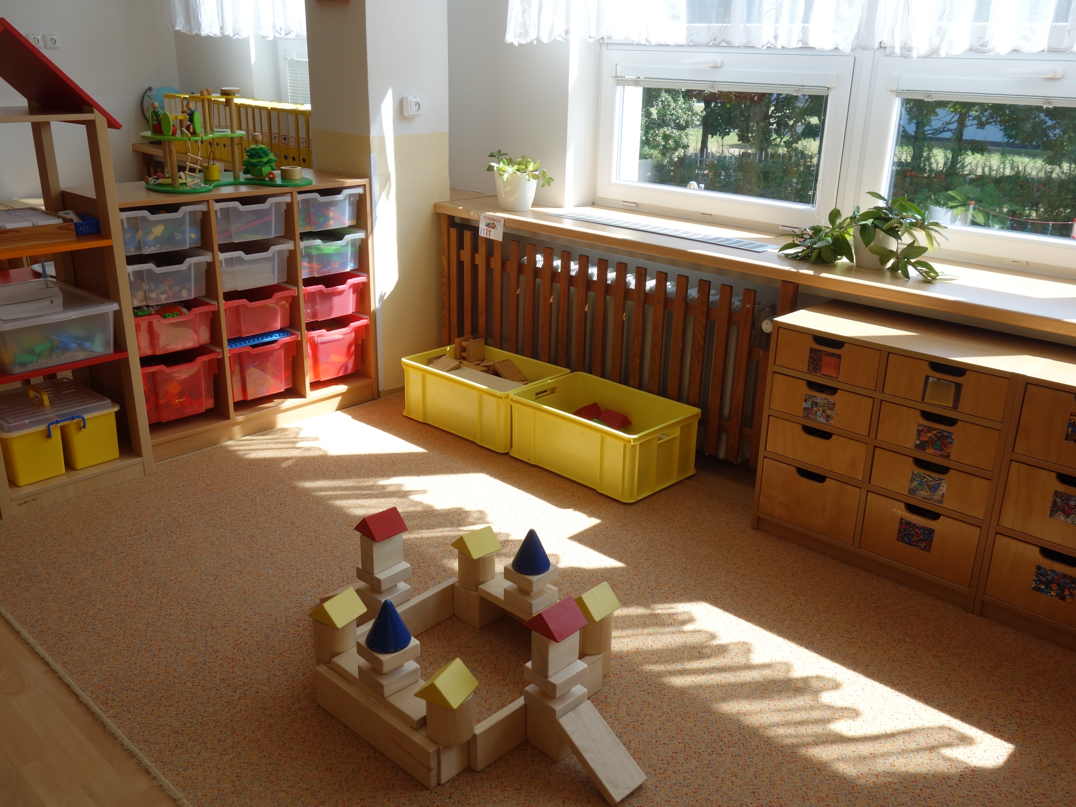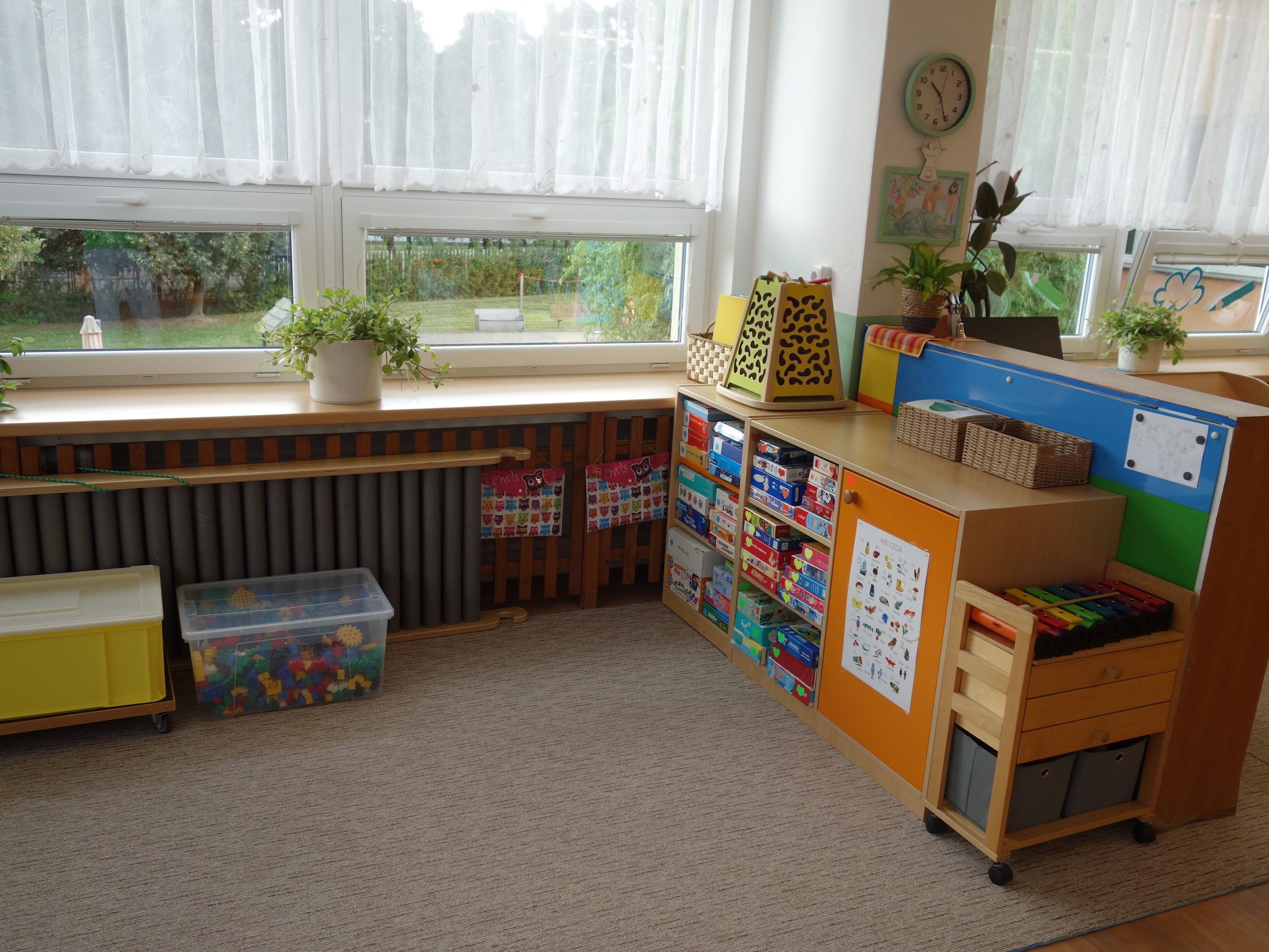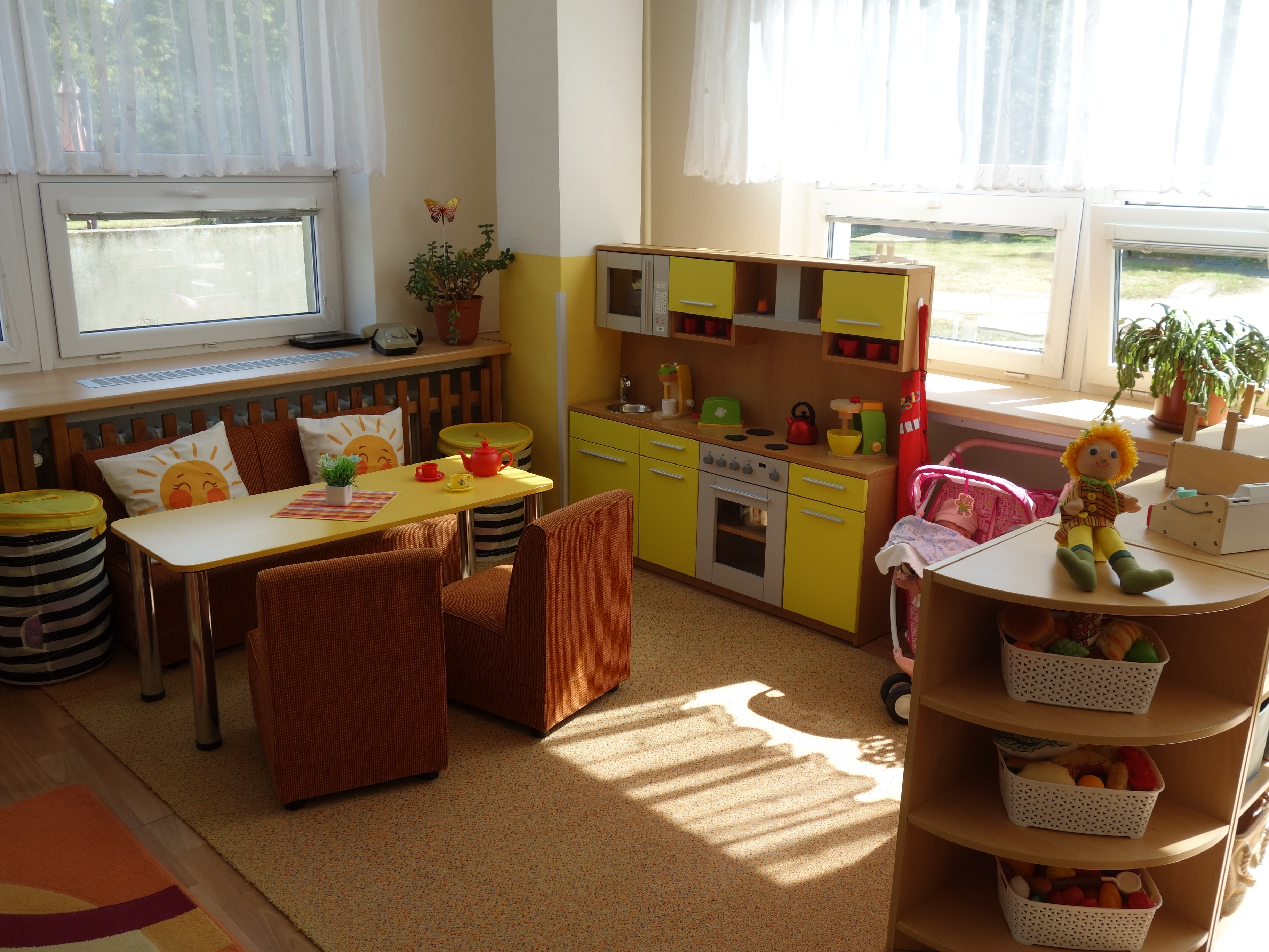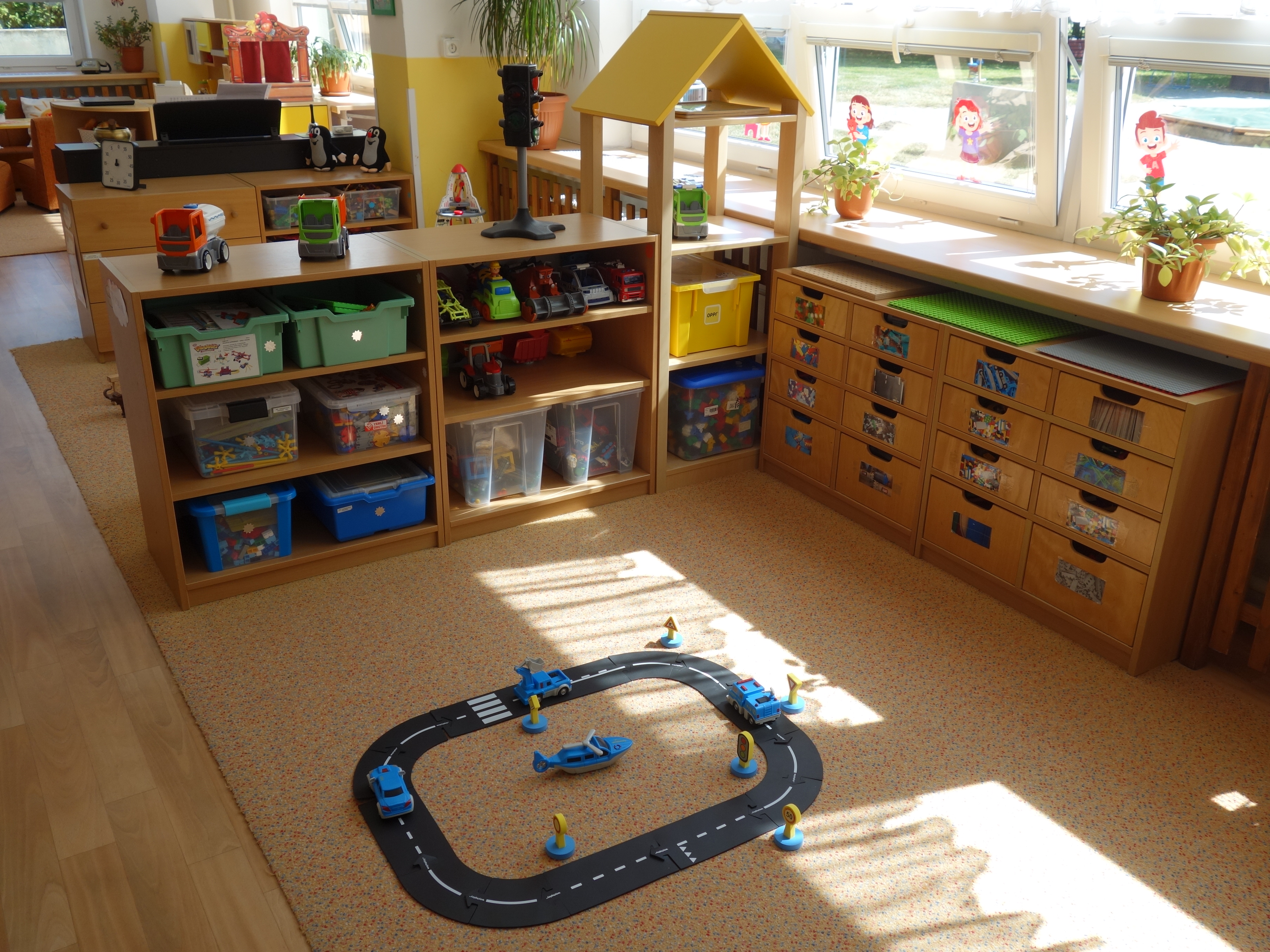 Děti se vzdělávají v pěti třídách – Hříbek, Kočička, Květinka, Motýlek a Sluníčko. Každá třída má svůj vlastní vchod do budovy, přípravnu jídla, sociální zařízení, šatnu pro děti i zaměstnance. Všechny třídy jsou vybaveny dřevěným nábytkem, který je rozdělen do několika hracích koutků, aby sloužily k celkovému rozvoji dětí. Hračky a didaktické pomůcky jsou umístěny tak, aby si je děti mohly samostatně brát a následně i ukládat. Ve třídě jsou k dispozici pomůcky pro pohybové, výtvarné, hudební a jiné činnosti. Dbáme na to, aby děti byly vedeny k rozvoji sebeobsluhy, současně klademe důraz na pitný režim a dostatek pohybu. Výzdoba tříd a šaten se pravidelně obměňuje, aby se v nich děti cítily dobře a chodily do mateřské školy rády.
