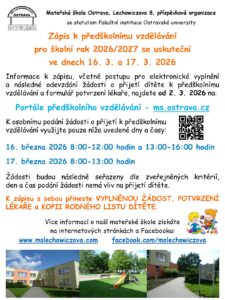Statutární město Ostrava zřídilo pro všechny mateřské školy Portál předškolního vzdělávání, který umožňuje zákonným zástupcům generování žádosti pro přijetí dítěte do MŠ k předškolnímu vzdělávání. Generování žádosti je možno využít nejen pro řádný zápis na nový školní rok, ale i pro zápis v průběhu školního roku, pokud MŠ disponuje volnými místy. Informaci o volných místech … Celý článek